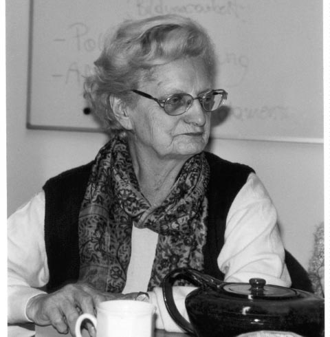 Born in 1920 to politically active Jewish parents in Vienna, Irma Schwager fled to Belgium in 1938 and then to France. Detained in a camp, she escaped and joined the resistance movement. This experience led her to peace work. And the way that women are affected by wars made her an advocate for the independence of women and against structural violence. After Austrias liberation from fascism, she returned and became involved in the International Democratic Womens Federation. She is an advocate for the implementation of the goals of the United Nations Conference on women and for disarmament.