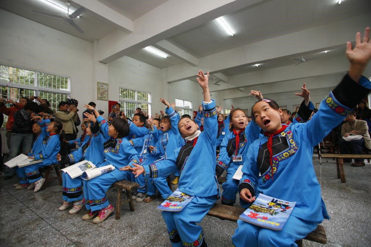 湖南湘西州凤凰县三拱桥小学的乡土教材课——唱苗歌“嘀格调”。