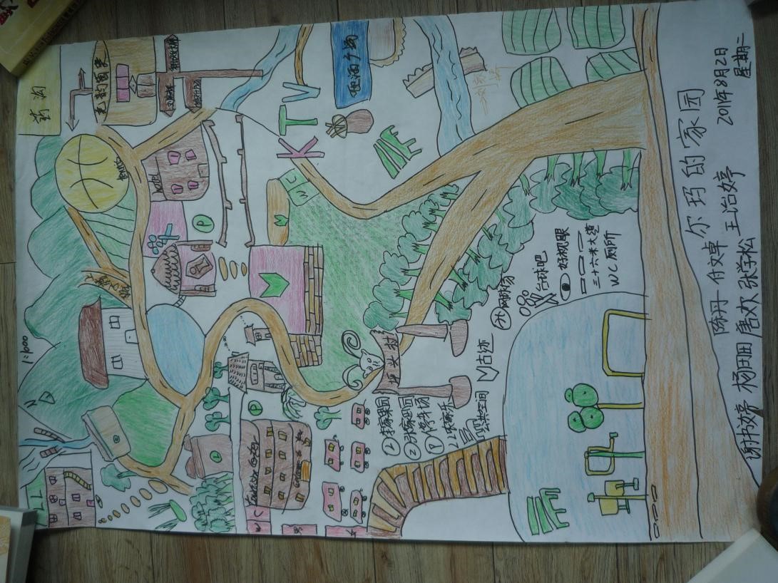 村寨图是让学生画出自己居住的村子的文化地图。这需要学生观察自己村寨的路径、地形和各种建筑及其他地上物的位置,并选择出自己村寨中自己最喜欢或和自己关系最密切的一些地点,比如你经常玩耍的地方,你最喜欢的亲朋好友的家,你觉得村子里最重要的地方等等,然后将这些内容画在村寨的地图里。这个活动一是锻炼了学生的观察力和发现力——一花一树、一草一木、一屋一舍、一石一水都会进入自己的视野,很多学生会发现细节!二是锻炼学生选择的能力——在看到的当中选择这个花这个树,这个屋这个场,需要想想怎么选和为什这样选;三是表达能力——用你自己的方式把你的选择表达出来。画出村寨图后,学生们会觉得原来因熟悉而被忽视的村寨竟然有这么多值得记忆的东西,那种亲切感会油然而生。相信画过村寨图的同学,不管将来他走到哪里,在自己村寨里的童年记忆将会永远铭刻于心。