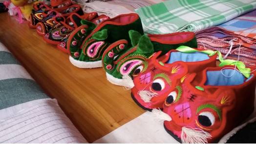 手工坊从06年开始才有订单,因此06年之前,牛大姐她们都是志愿在做,后来有了订单后社员就有了报酬。第一批订单是2004来自北京的《农家女》杂志,第二批订单是2006来自香港的公平贸易。妇女拿的是计件工资,每道工序(步骤)的价格乘以件数就是妇女的总收入。而在确定每道工序的价格时,工作坊会考虑工序的复杂程度,越复杂越精细的工序,价格定越高,同时,由于有的妇女手快,有的手慢,所以多次试验,取出平均数,以供定每道工序价格时做参考。另外,老人和年轻人都是利用空闲时间绣一绣,工作时间不等,而像绣花狮子(鞋),70、80天才能绣好,因此计算起来工资会因人、因工而异。这样,每位妇女的年收入从一千到七八千不等。在结算工资时,快则一个月结算一次,迟则一个季度结算一次,报酬并不都是按照钱来结算,有的是按照日用品和粮食来结算。