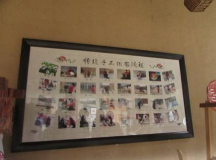 参观过程中,我们看到手工坊的展厅里不仅有各种手工制品,还有展示的过去老人结婚时穿的衣服,小孩的棉衣服和满月时穿的衣服,手工坊办公室的墙上展示的是老人剪纸的照片及一些剪纸作品。牛大姐说,老人才是我们的宝贝,老人做剪纸和手工艺,一做几十年,老人还能讲出剪纸反映的许多中国传统文化故事,即使她们现在学,肯定也学不全了。手工坊还组织了厨艺班、心灵手巧班。